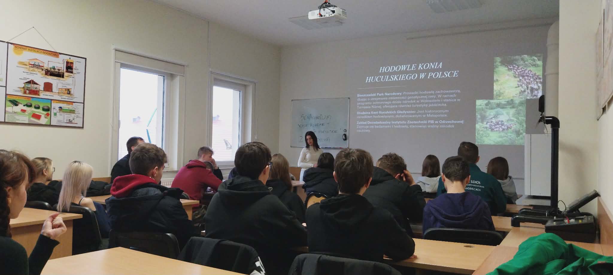 Uczniowie naszej szkoły wzięli udział w kolejnym seminarium związanym z zasobami genetycznymi zwierząt gospodarskich w Polsce. Spotkanie było na temat ras rodzimych ze skupieniem się na koniach huculskich Instytutu Zootechniki w Odrzechowej. Uczniowie kierunków technik rolnik oraz technik weterynarii zapoznali się z pracą badawczą i naukową IZ w Odrzechowej. W naszej szkole odbyła się część pierwsza planowanego cyklu spotkań, część teoretyczna. W styczniu czeka na naszych uczniów część praktyczna w terenie