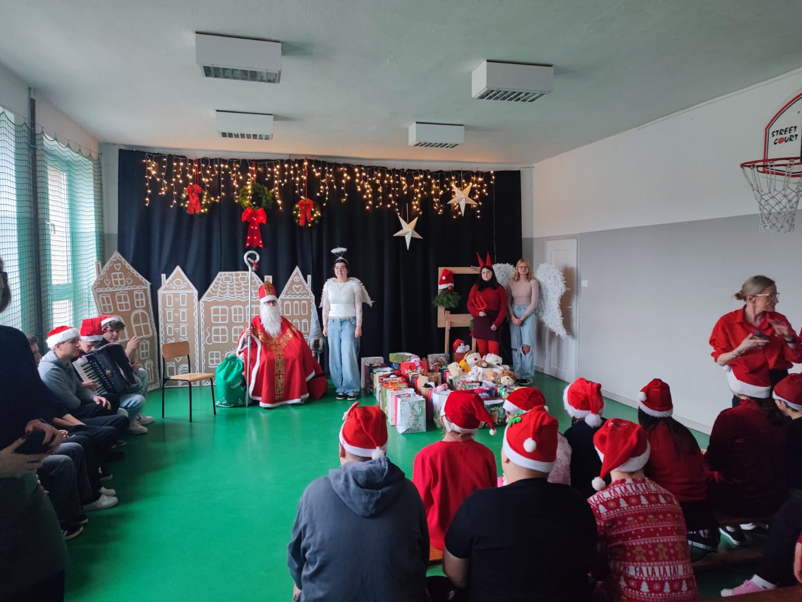 Od 17-stu lat uczniowie naszej szkoły przygotowują i prowadzą spotkania mikołajkowe dla podopiecznych w SOSW w Sanoku. Tegoroczny Mikołaj rozdał wiele prezentów, a spotkanie, jak zwykle, przebiegło w miłej, ciepłej atmosferze pełnej śpiewu kolęd i radości obdarowanych.