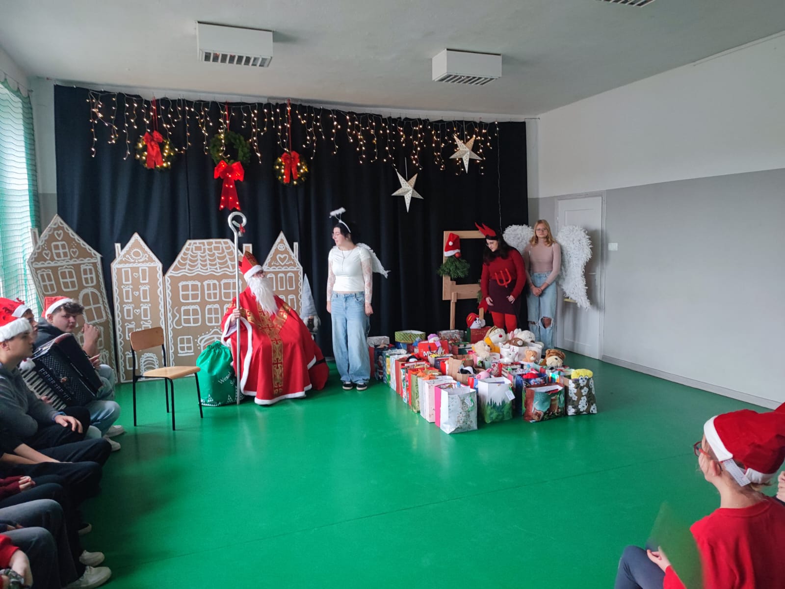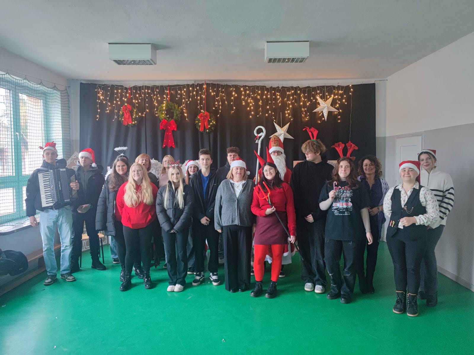 Z rozpędu, Św.Mikołaj wraz ze swoim orszakiem, poszukiwał i rozdawał słodycze, grzecznym uczniom i nauczycielom ZSCKR w Nowosielcach:))