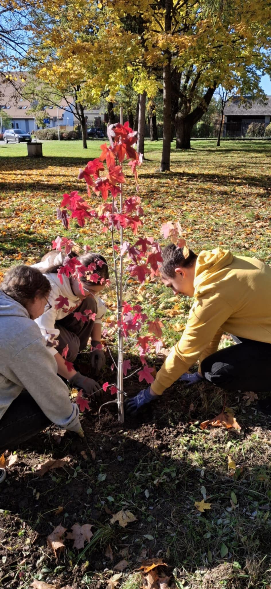 Drzewa sadzili uczniowie klasy I i II technikum architektury krajobrazu.