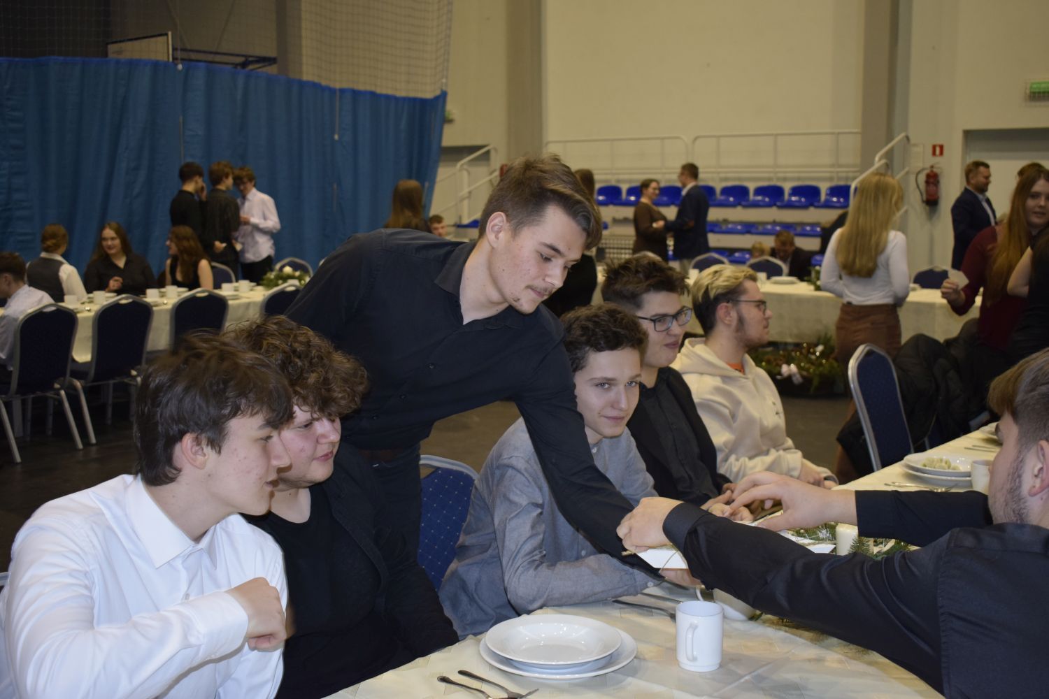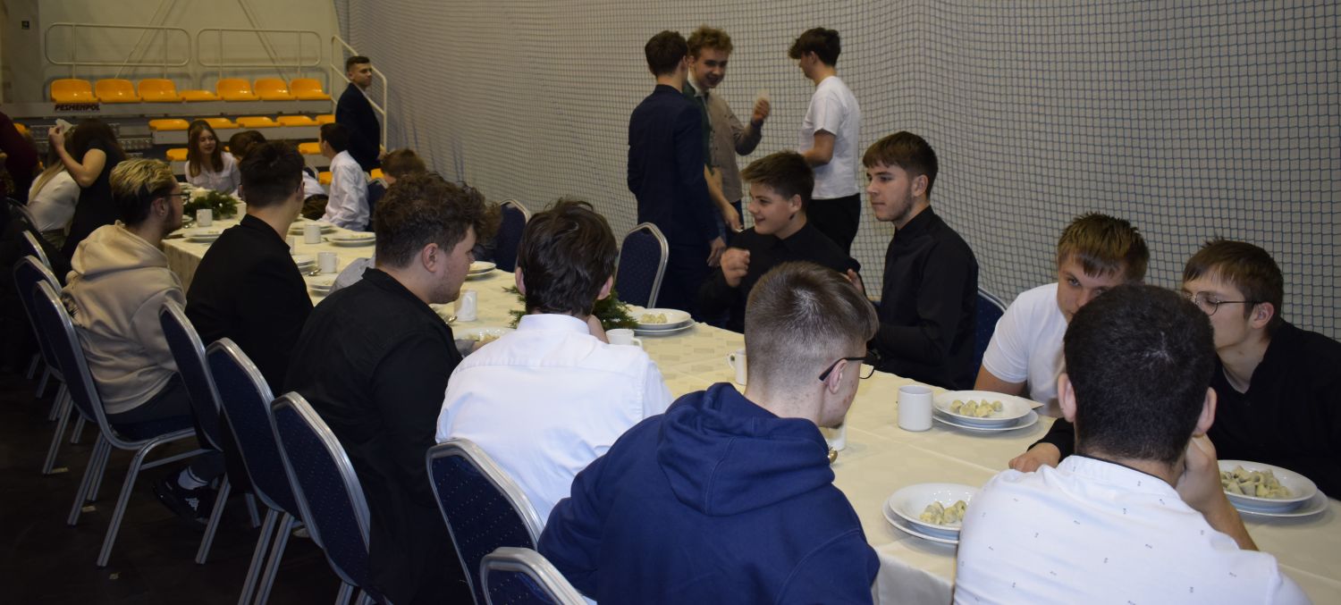 Wydarzenie rozpoczęliśmy od krótkiego przywitania wszystkich. W dalszej części młodzież naszego internatu wzięła udział w teatrze cieni, które wprowadziło wszystkich obecnych w wyjątkowy, świąteczny nastrój. Nasi wychowankowie wykazali się ogromną determinacją oraz odpowiedzialnością. Po części artystycznej, głos zabrał Pan wicedyrektor oraz kierownik internatu. Wreszcie nastąpił moment składania życzeń oraz dzielenia się opłatkiem, który symbolizuje pojednanie i wzajemną życzliwość. Następnie wszyscy zasiedliśmy do uroczystej kolacji, podczas której nie zabrakło tradycyjnych potraw wigilijnych takich jak: barszcz z uszkami, pierogi, ryby czy gołąbki. Spotkanie przebiegło w ciepłej, rodzinnej atmosferze, sprzyjającej refleksji i integracji społeczności internatu.