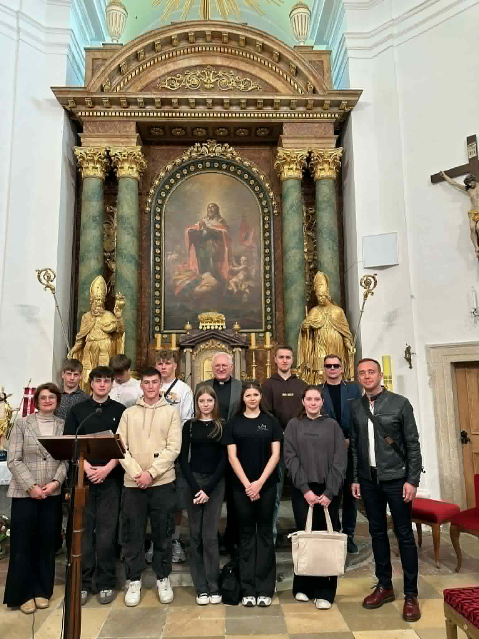 W niedzielę, 26 kwietnia 2026 roku, uczniowie Zespołu Szkół Centrum Kształcenia Rolniczego w Nowosielcach udali się na wzgórze Kahlenberg, gdzie o godzinie 12.00 w kościele Leopoldsberg została odprawiona msza w intencji praktykantów, uczniów i nauczycieli naszej szkoły. Mszę celebrował ks. Roman Kretor – rektor Kościoła na Kahlenbergu. Po mszy uczniowie zapoznali się z historią Odsieczy Wiedeńskiej króla Jana III Sobieskiego, a następnie na cmentarzu husarii zapalili znicz pamięci. Wydarzenie zrealizowano z inicjatywy opiekuna grupy, pana Konrada Widoty, za co dziękujemy w imieniu całej społeczności szkolnej.
