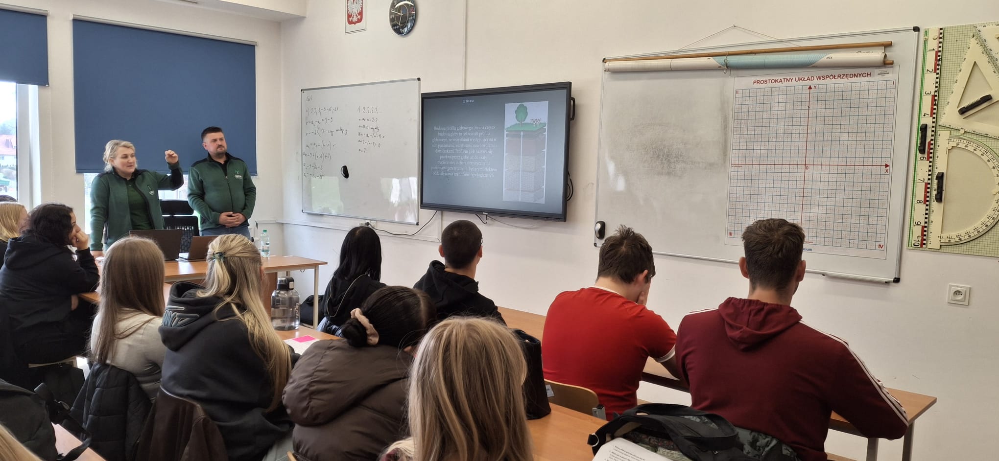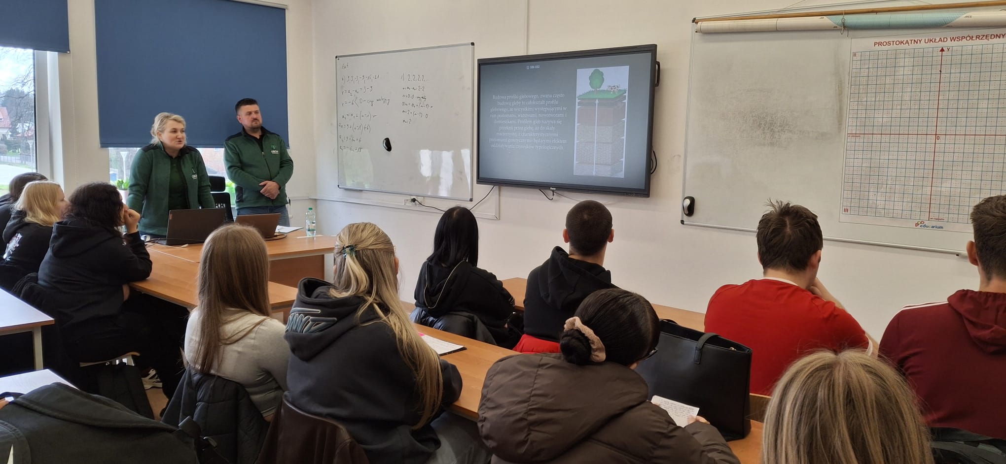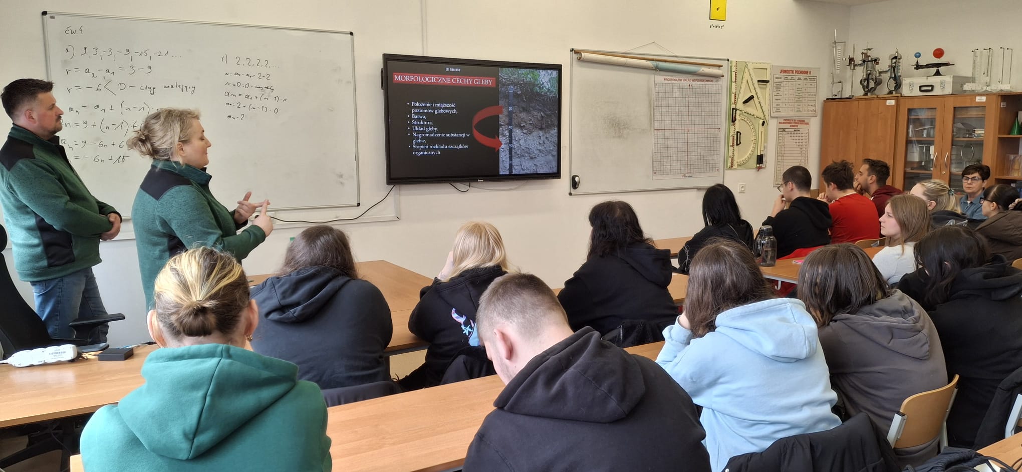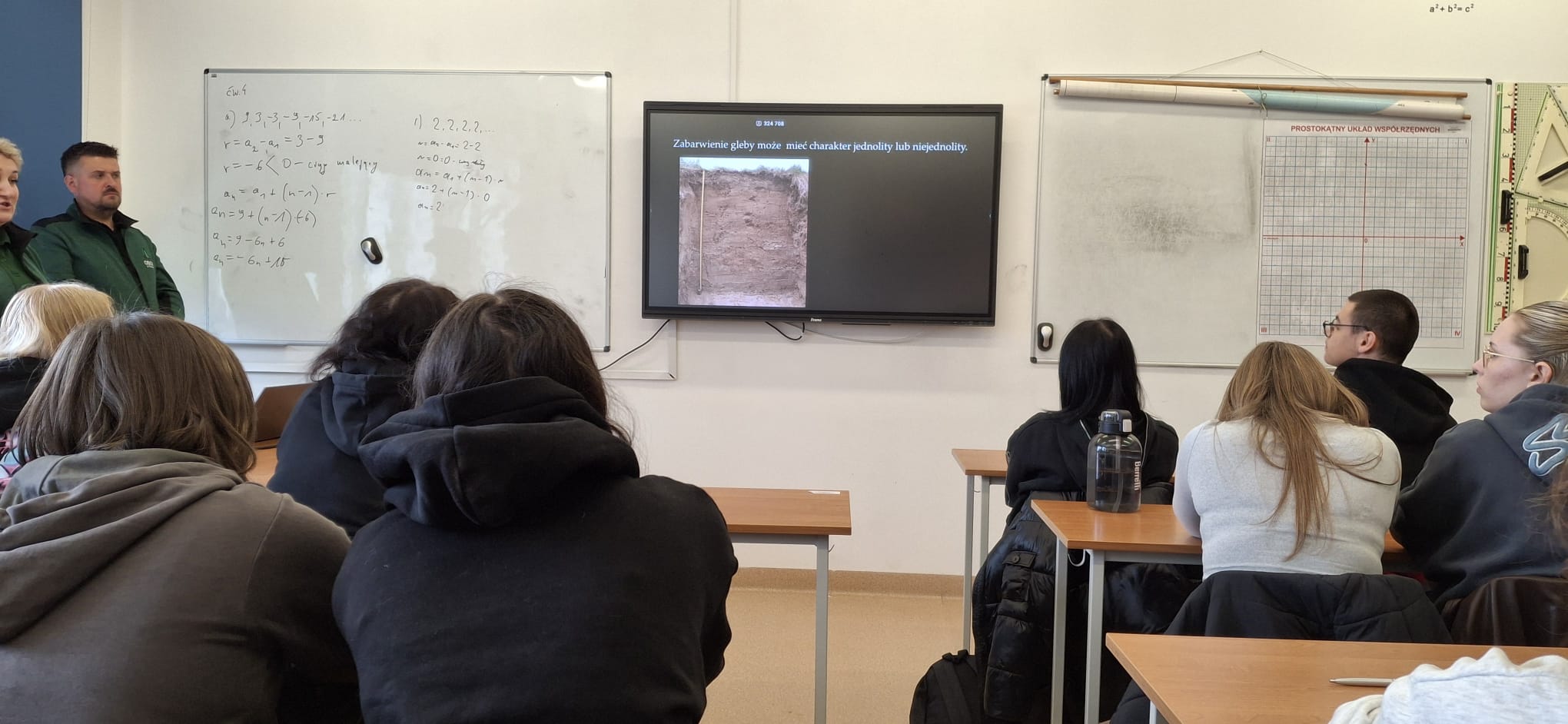 W kolejnej części zajęć praktycznych pracownicy OSCHR przedstawili informacje dotyczące profilu glebowego, ponieważ w ramach współpracy stacji z naszą Szkołą, kolejne zajęcia praktyczne będą dotyczyć analizy gleby na przykładzie odkrywki glebowej na jednym z pól uprawnych.