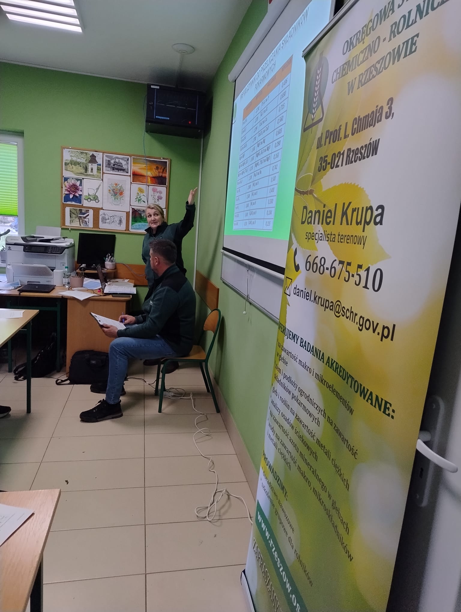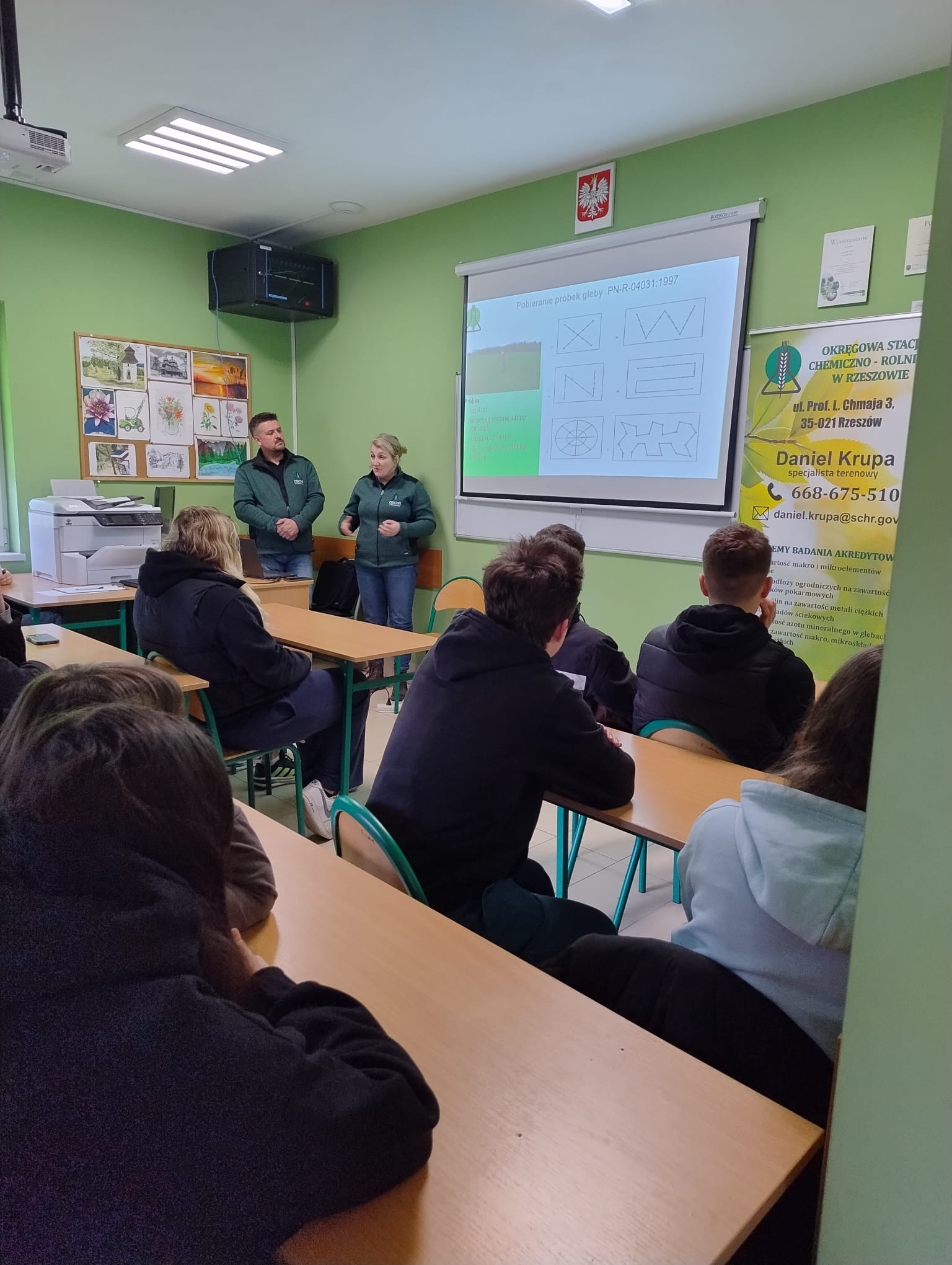 W dniu 10 kwietnia 2026 roku pracownicy Okręgowej Stacji Chemiczno-Rolniczej w Rzeszowie przeprowadzili w naszej szkole kolejne zajęcia praktyczne w ramach umowy o współpracy, pomiędzy ZSCKR w Nowosielcach i Okręgową Stacją Chemiczno-Rolniczą.